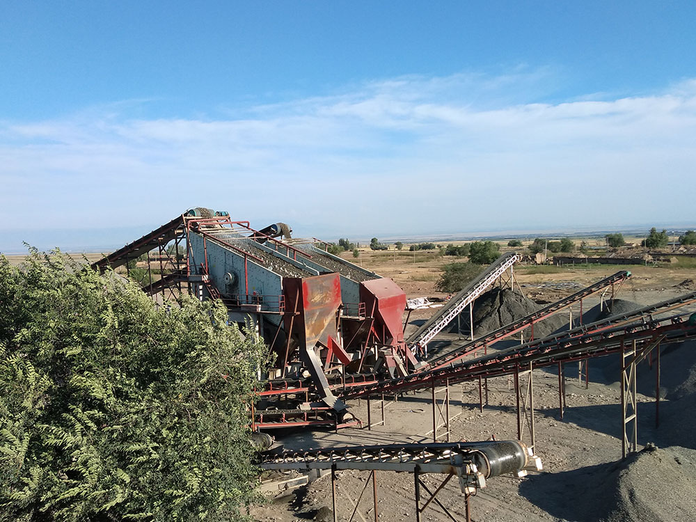 Penanganan Bahan Baku: Blok granit berukuran besar (≤1500 mm) memasuki lini produksi terlebih dahulu. Material curah ini ditempatkan pada pengumpan bergetar, yang bergetar secara seragam untuk mengalirkan granit dengan kecepatan tetap dan mengalir ke penghancur rahang. Misalnya, dalam pabrik pasir granit yang memproses 2000 ton per hari, pengumpan bergetar secara seragam mengangkut sekitar 250 ton bahan baku granit per jam. Operasi Penghancuran Kasar: Penghancur rahang menggunakan aksi kompresi antara rahang bergerak dan rahang tetap untuk melakukan penghancuran kasar pada blok granit besar. Setelah penghancuran kasar, hasilnya berupa agregat kasar dengan ukuran partikel ≤300 mm. Dalam produksi aktual, kapasitas pemrosesan penghancur rahang berkaitan erat dengan kekerasan dan ukuran partikel bahan baku. Umumnya, untuk granit dengan kekerasan sedang, penghancur rahang dapat memproses 300–500 ton bahan baku per jam, menghasilkan sekitar 200–350 ton agregat kasar.