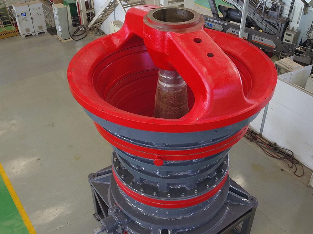 Penggantian bushing dan segel balok silang tidak memerlukan pembongkaran balok silang, yang sangat meningkatkan efisiensi perawatan. Jika pembongkaran balok silang diperlukan, pemisah balok silang hidraulik khusus menyediakan dukungan yang nyaman. Mur pengunci kerucut dinamis dilengkapi dengan cincin pemotong, sehingga memudahkan penggantian liner kerucut dinamis. Sistem kontrol posisi spindel otomatis tidak hanya memfasilitasi kontrol ukuran produk, tetapi juga secara otomatis mengompensasi keausan liner, sehingga pengoperasian menjadi lebih mudah.
